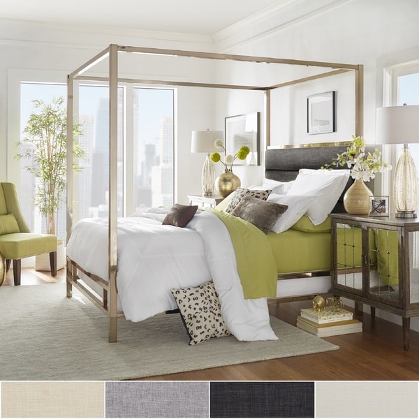Modern meets medieval influences with this striking canopy bed—the perfect addition to any bedroom, no matter your style. The design is simple, classic, and stylish, bringing a peaceful and harmonious beauty to your bedroom. Check out our headboard canopy selection for the very best in unique or custom, handmade pieces from our beds & headboards shops. Champagne gold finish metal canopy bed with upholstered headboard insert upholstery options include white linen, dark grey linen, or black bonded leather mattress and box spring are required for use, but not included full bed measures 58.5 w x 81 d x 83 h queen bed measures 64.5 w x. This canopy bed is made of metal, very sturdy.it comes with two sturdy and sophisticated headboards and many slats,the bed frame comes refresh your teen's bedroom with this stylish canopy bed frame.